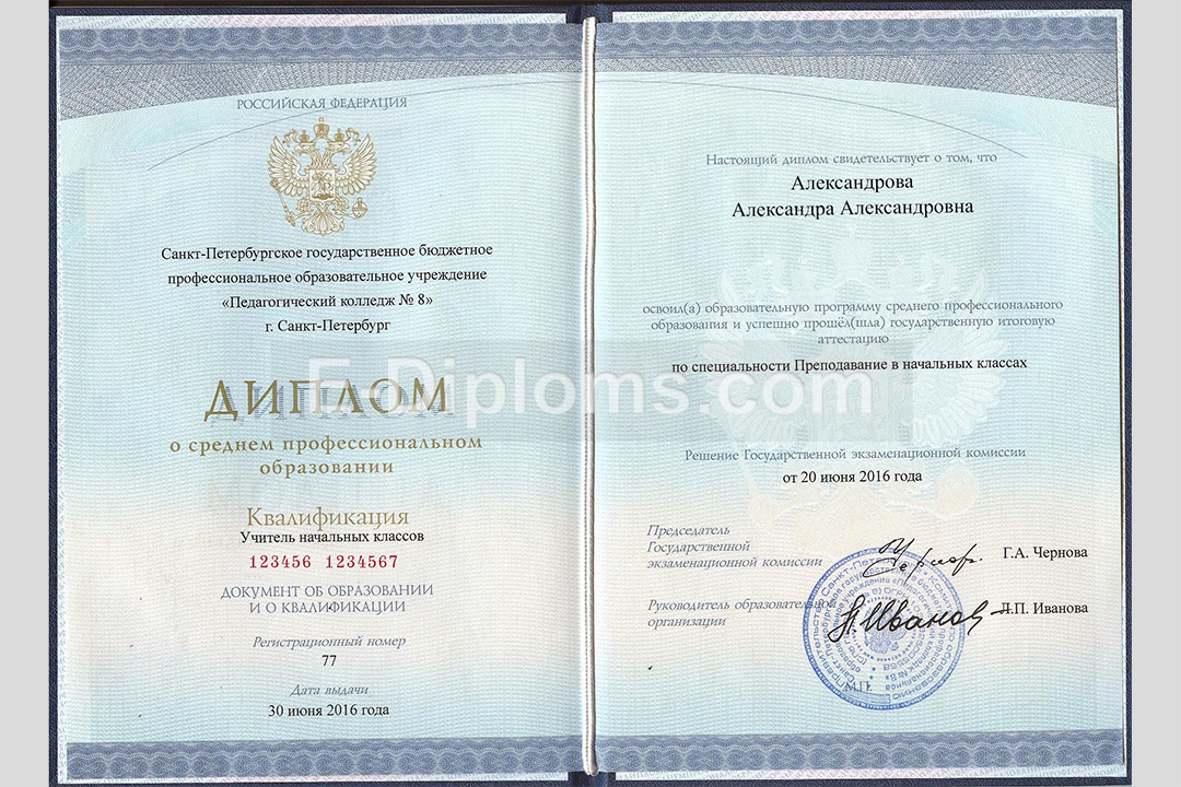 У нас на сайте Вы можете заказать диплом о среднем профессиональном образовании нового образца об окончании техникума / колледжа (специалист среднего звена) или пту (квалифицированный рабочий, служащий). Выбирайте любую профессию и ссуз, а мы качественно и профессионально изготовим ваш диплом. Доставка бесплатна, оплата при получении, для проживающих в регионах доступна услуга «макет», есть скидки. При заказе до 14.00 привезем уже завтра!